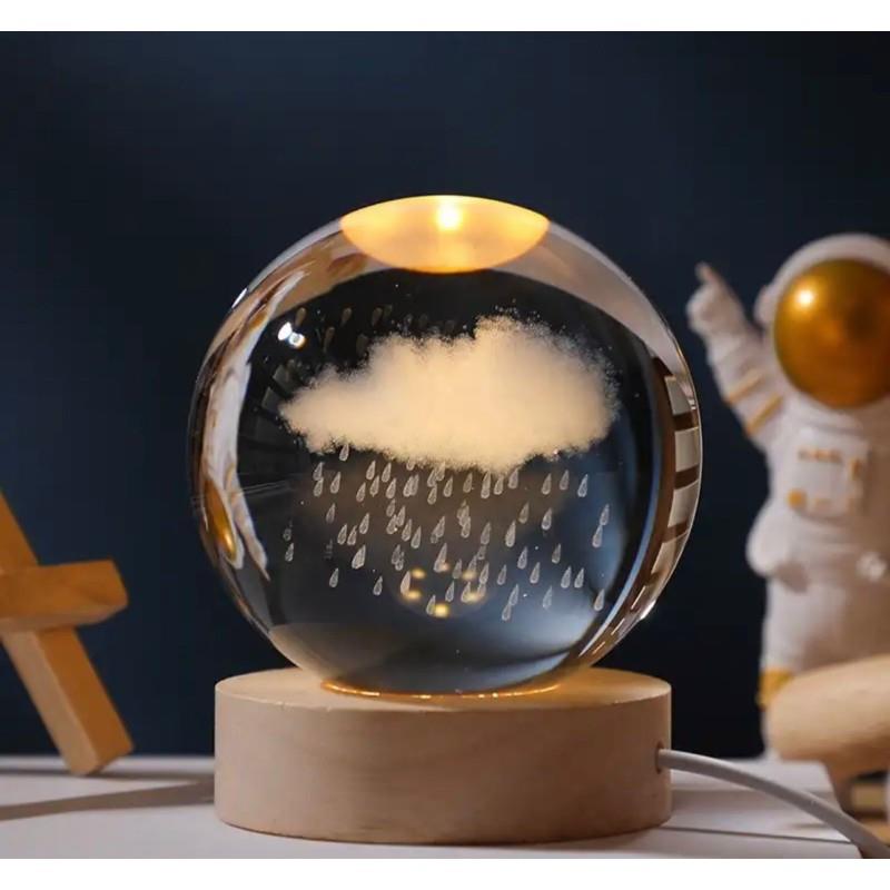 Bulut ve Yağmur Renk Değiştiren Işıklı Cam Küre 8cm