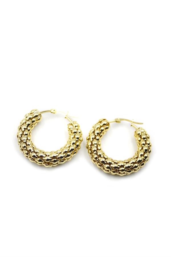 Büyük Boy Çelik Halka Hasır Küpe - Altın