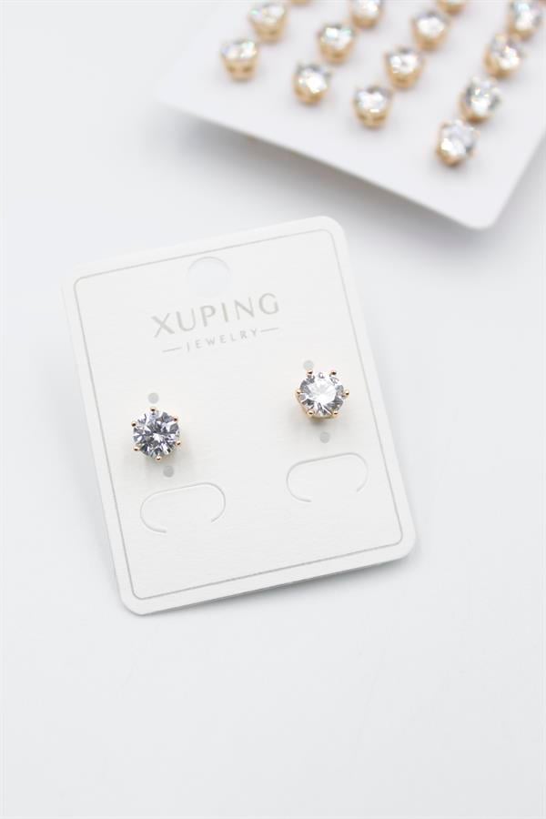 Büyük Boy Zirkon Taşlı Tektaş Küpe - Altın