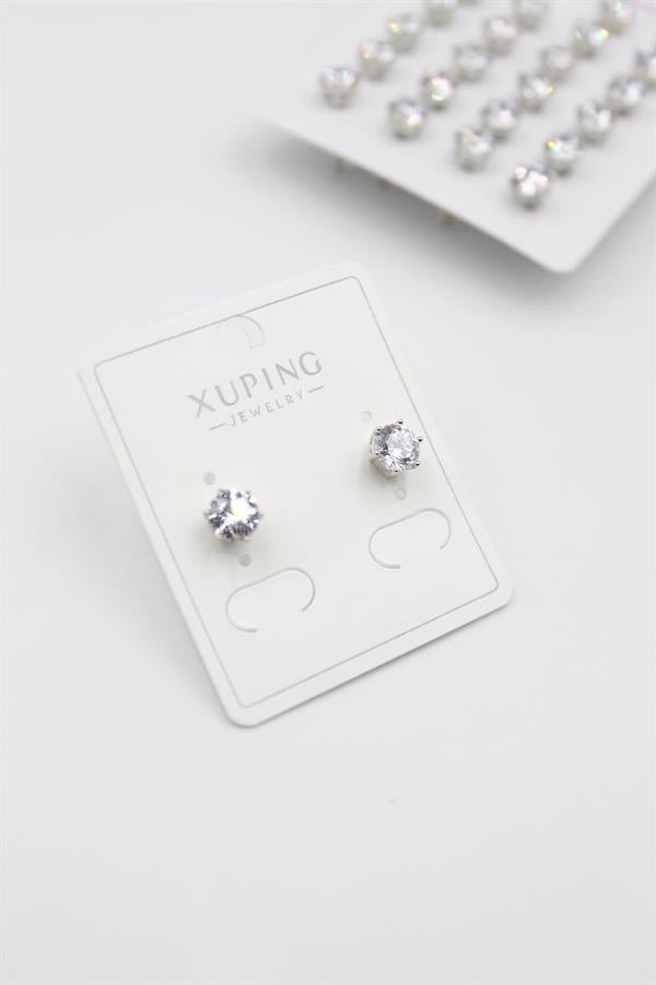 Büyük Boy Zirkon Taşlı Tektaş Küpe - Gümüş