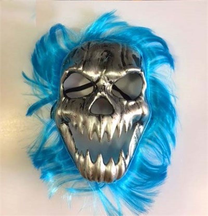 Maskenin Etrafı Mavi Saçlarla Çevrilmiştir