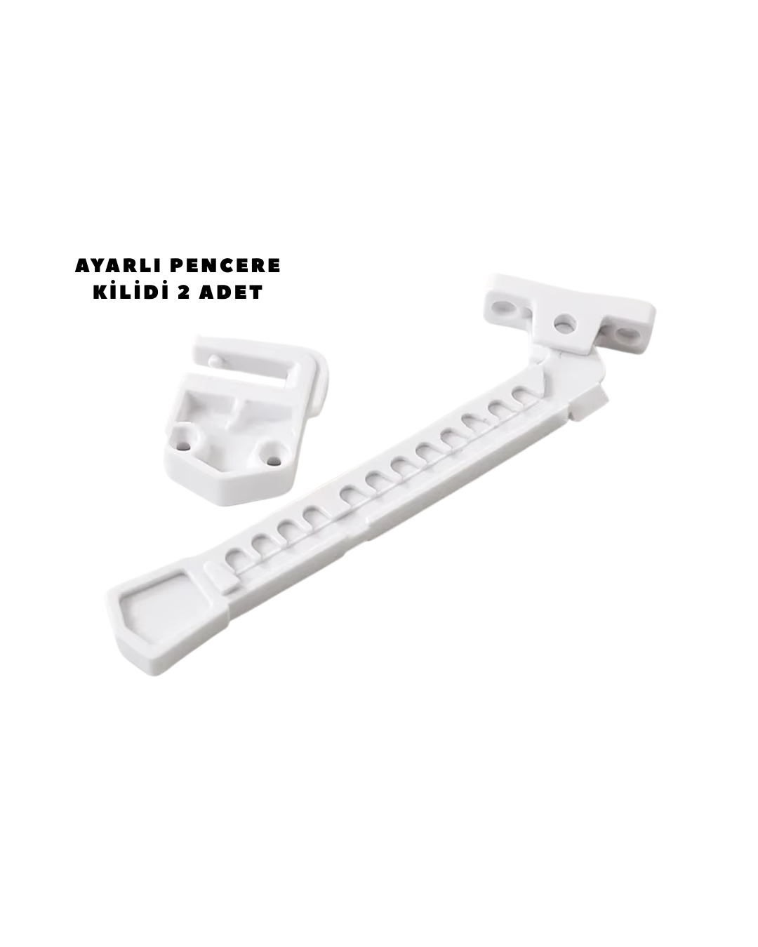 Pencere açılma kontrol aparatı, ev güvenliğini artırmak amacıyla tasarlanmıştır. Pencerenin belirli bir noktadan fazla açılmasını engelleyerek kontrollü havalandırma sağlar. Kompakt ve kullanışlı yapısı sayesinde pencere estetiğini bozmaz. Kolay montaj özelliği ile herkes tarafından rahatlıkla uygulanabilir. Paket içeriğinde 2 adet ürün bulunmaktadır.