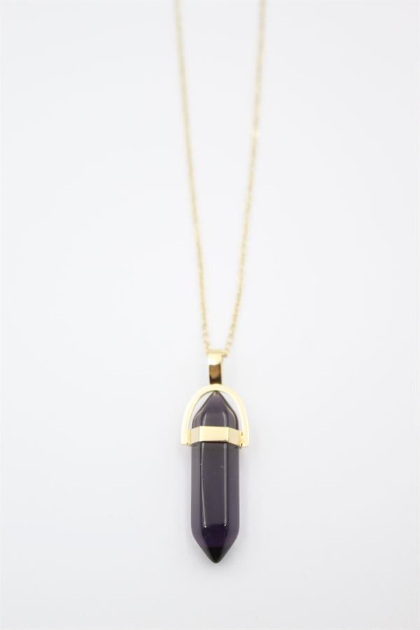 Cam Taşlı Kolye - Mor