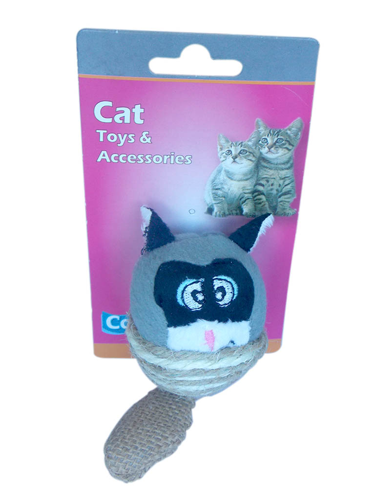 6x5 cm ebatlarında ipli rakun kedi oyuncağı