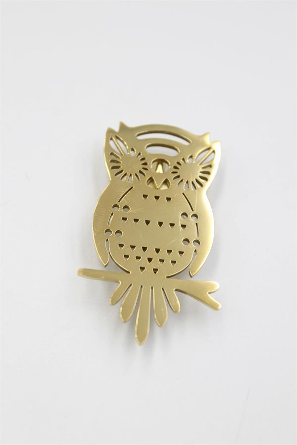 Çelik Baykuş Broş - Altın