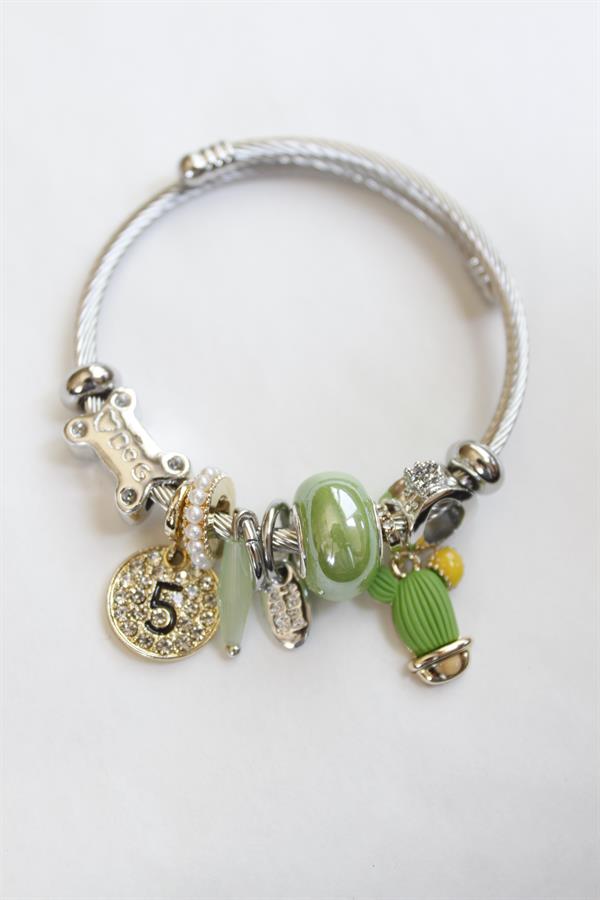Çelik Charmlı Kaktüs Bilezik - Yeşil