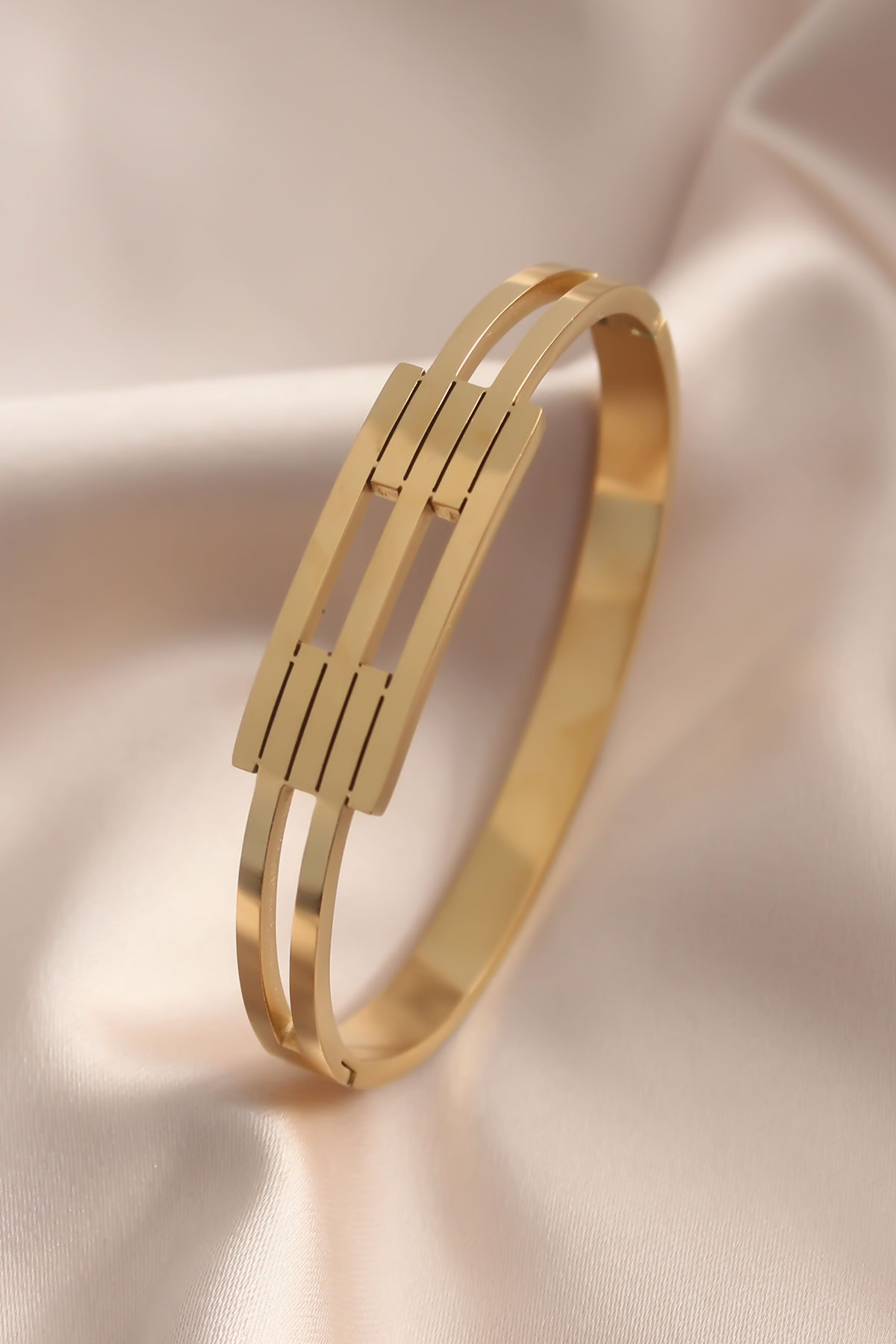 Çelik Gold Renk Kaburga Model Kelepçe Kadın Bileklik - TJ-BB4662