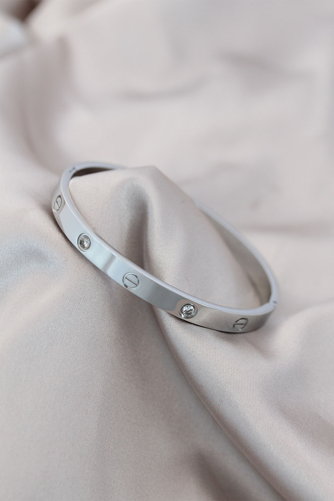 Çelik Gümüş Renk Zirkon Taşlı Bileklik - TJ-BB4120
