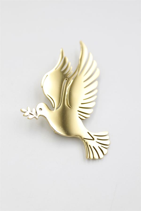 Çelik Güvercin Broş - Altın
