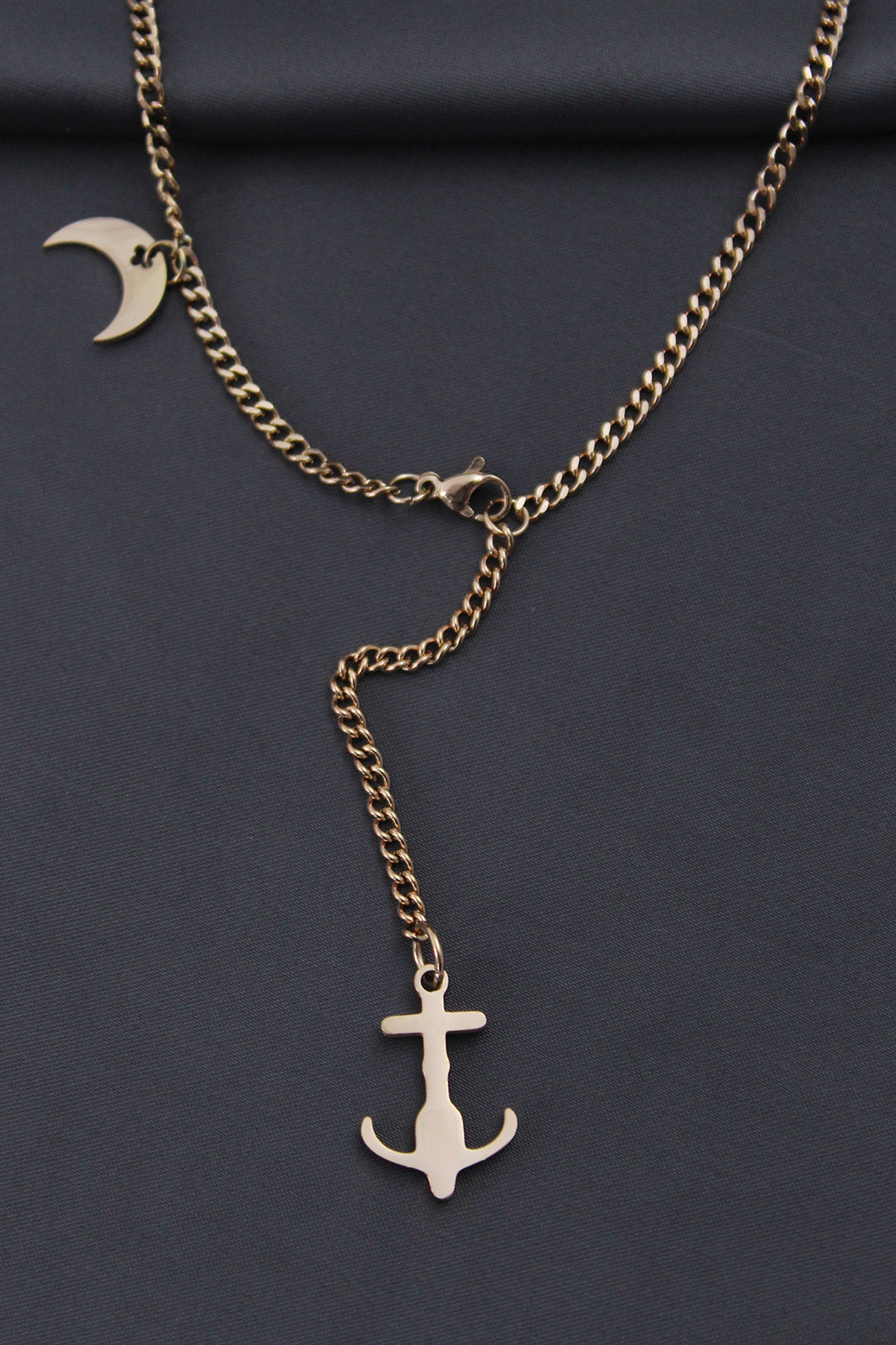 Çelik Rose Renk Çapa Tasarımlı Kadın Kolye - TJ-BKO5926