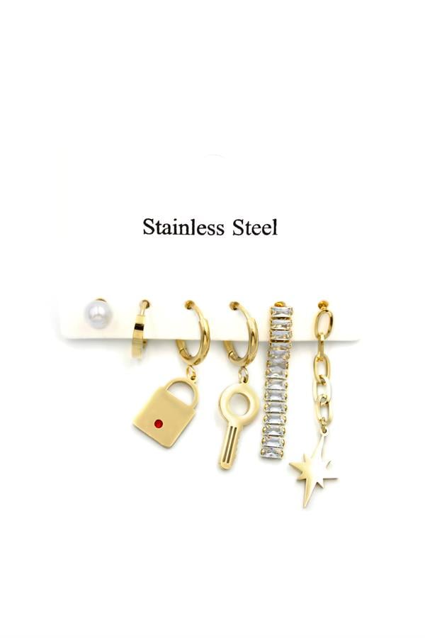 Çelik Set Küpe - Altın