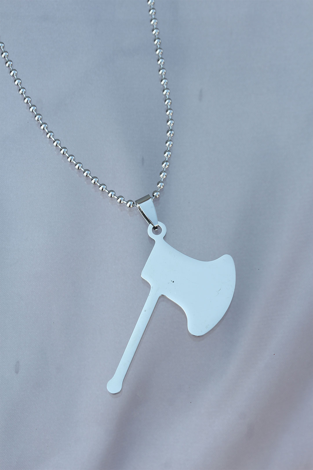 Çelik Uçlu Balta Figürlü Gümüş Renk Zincir Kolye - TJ-ERK1097