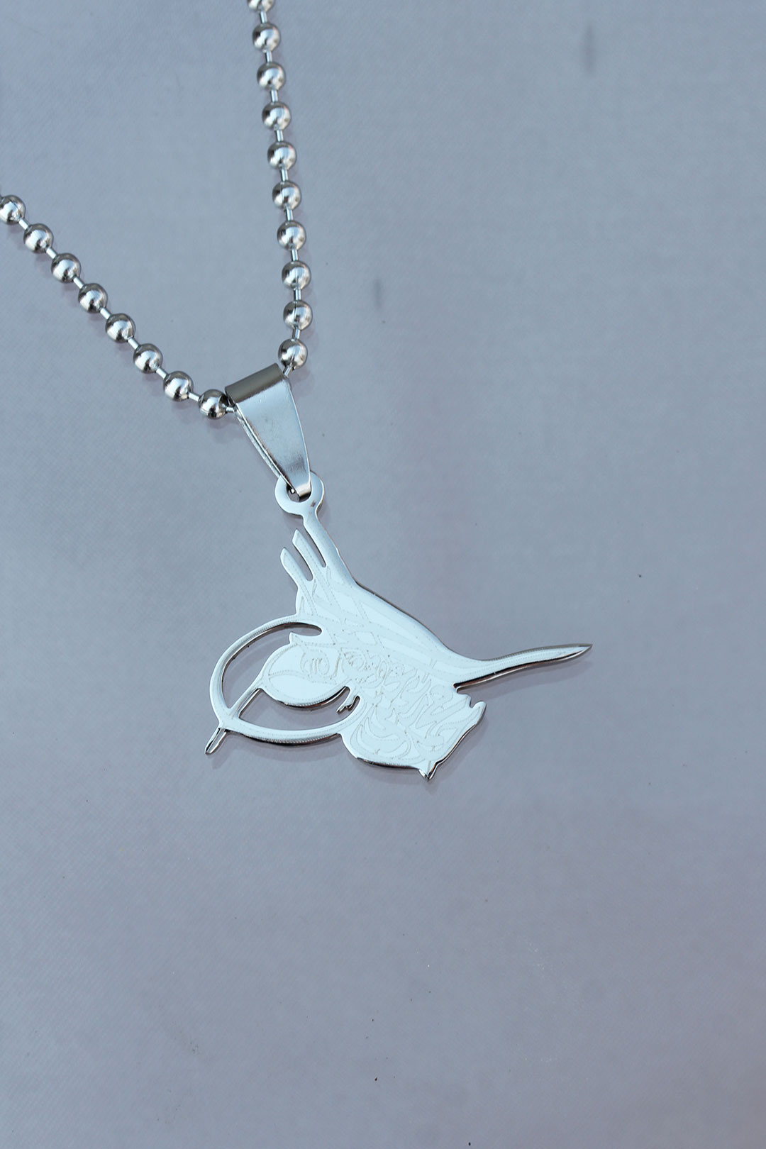 Çelik Uçlu Tuğra Tasarımlı Gümüş Renk Zincir Kolye - TJ-ERK1113