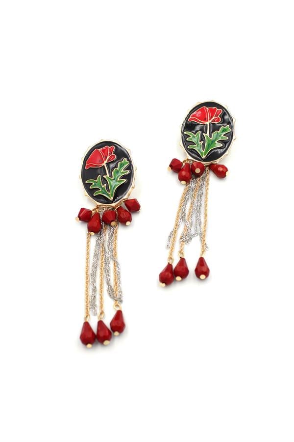 Çiçek Küpe - Kırmızı