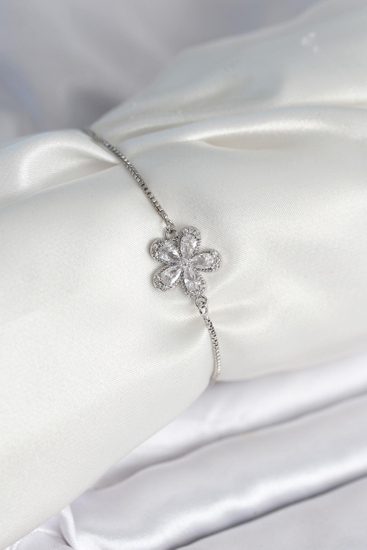 Çiçek Model Asansörlü Gümüş Renk Kadın Bileklik - TJ-BB8012
