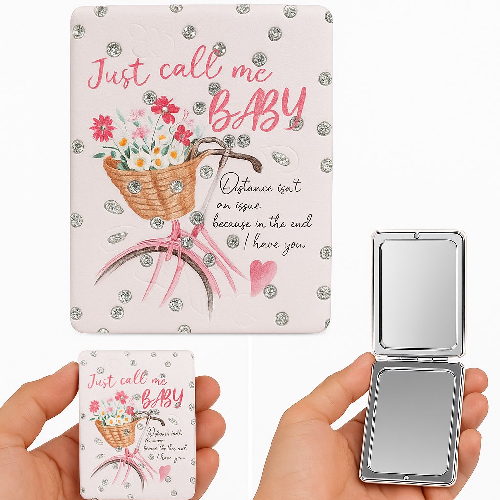 Çiçekli Bisiklet Tasarımlı Simli Büyüteçli Pratik Mini Cep Çanta Makyaj Aynası