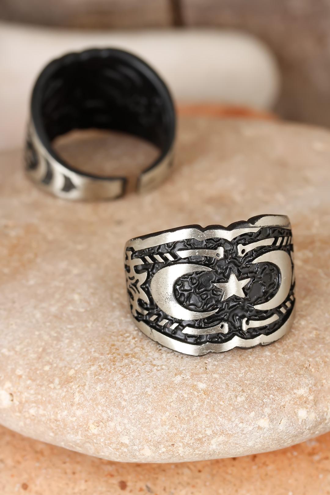 Çift Hilal Figürlü Kare Füme Gri Renk Ayarlamalı Erkek Yüzük - TJ-EY174