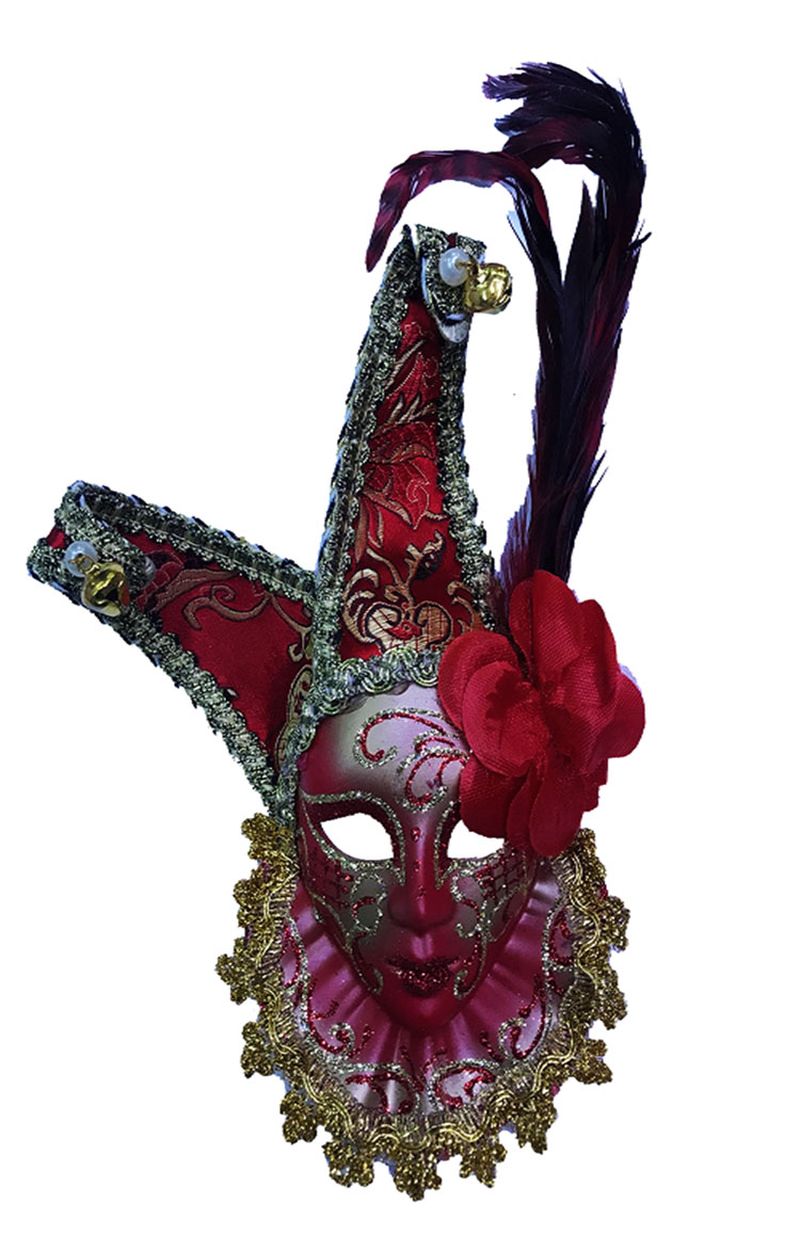 Çıngıraklı Dekoratif Tüylü Seramik Maske Kırmızı Renk