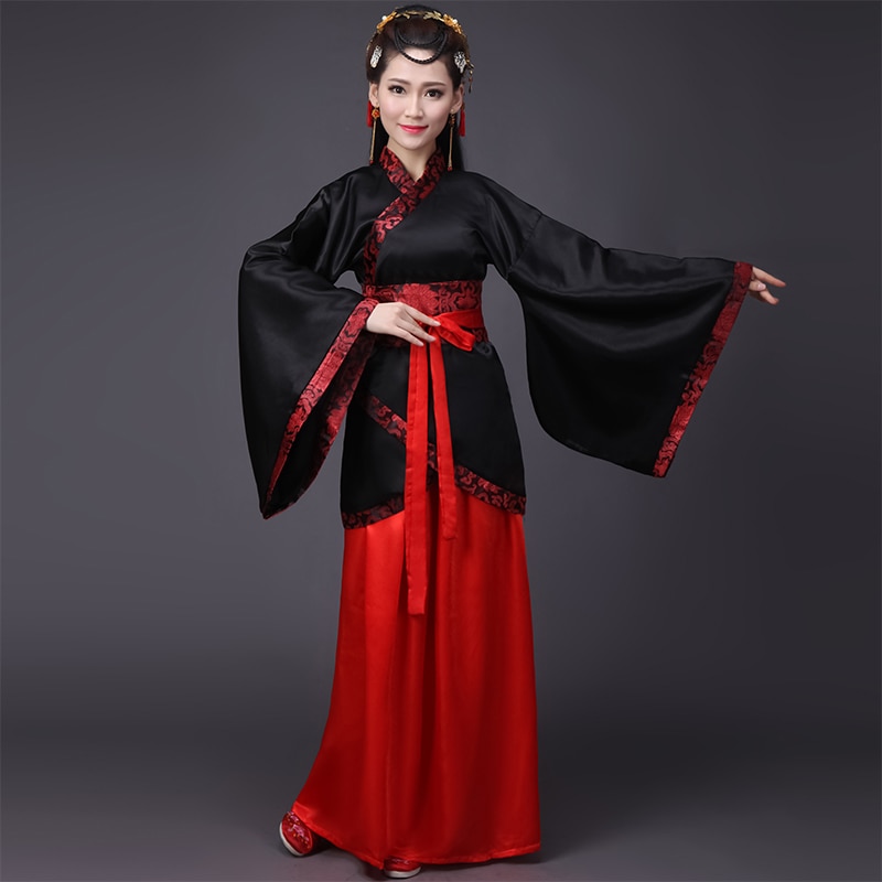 Kostüm kenarları çin motifli siyah-kırmızı kurdele ile çevrilmiştir