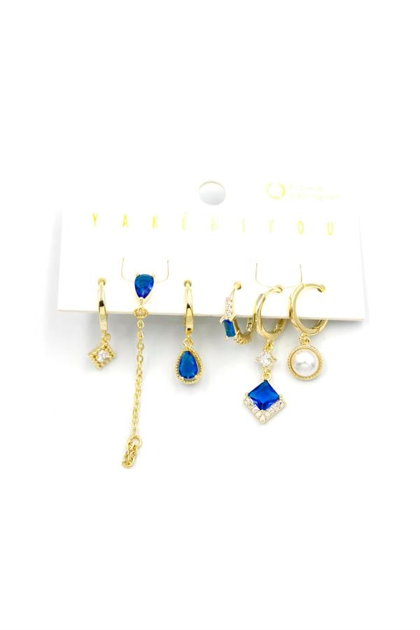 Çoklu Taşlı Küpe - Altın