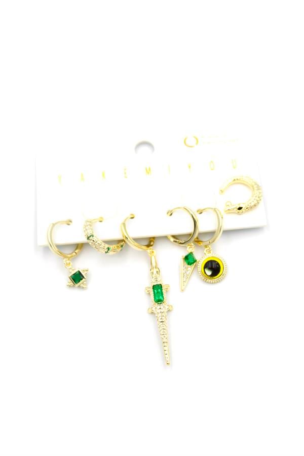 Çoklu Timsah Küpe - Altın