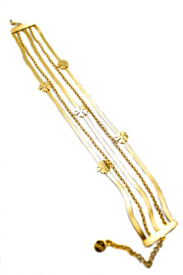 Çoklu Yonca Zincir Bileklik - Altın