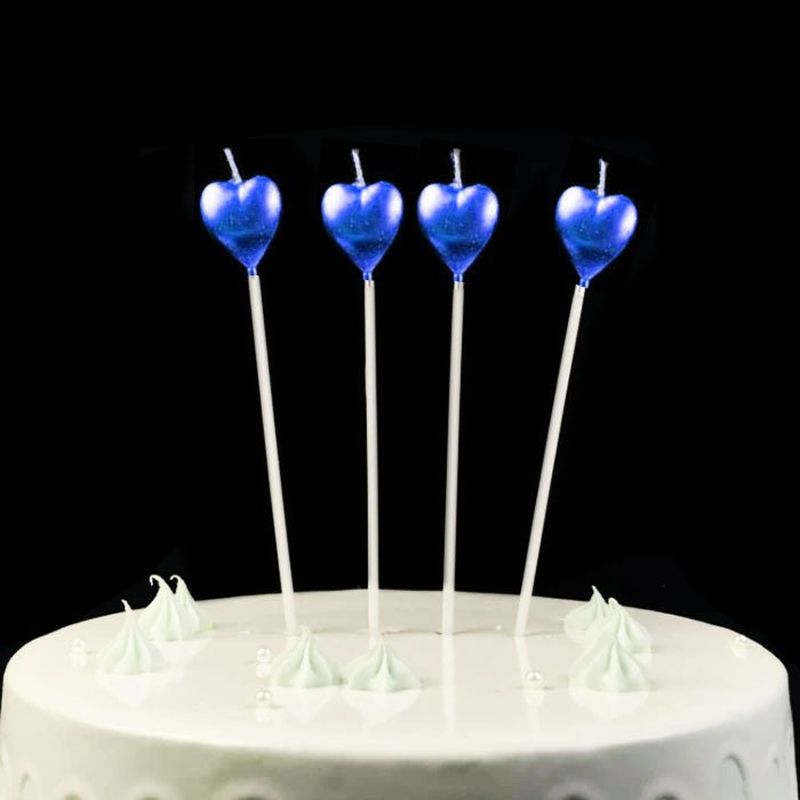 Çubuklu Metalize Kalp Mum Doğum Günü Mumu Mavi 4 Adet