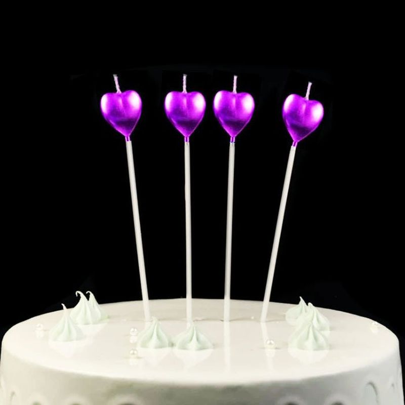 Çubuklu Metalize Kalp Mum Doğum Günü Mumu Mor 4 Adet
