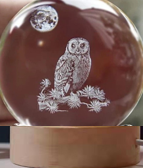 Dekoratif BAYKUŞ Tasarımlı Ahşap altlıklı Işıklı Cam Küre Büyük boy 8cm