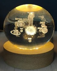 Dekoratif Bütün Gezegenler Tasarımlı Ahşap altlıklı Işıklı Cam Küre Cam:6cm Ahşap:2cm