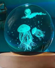Dekoratif Deniz Anası Tasarımlı Ahşap altlıklı Işıklı Cam Küre Cam:6cm Ahşap:2cm