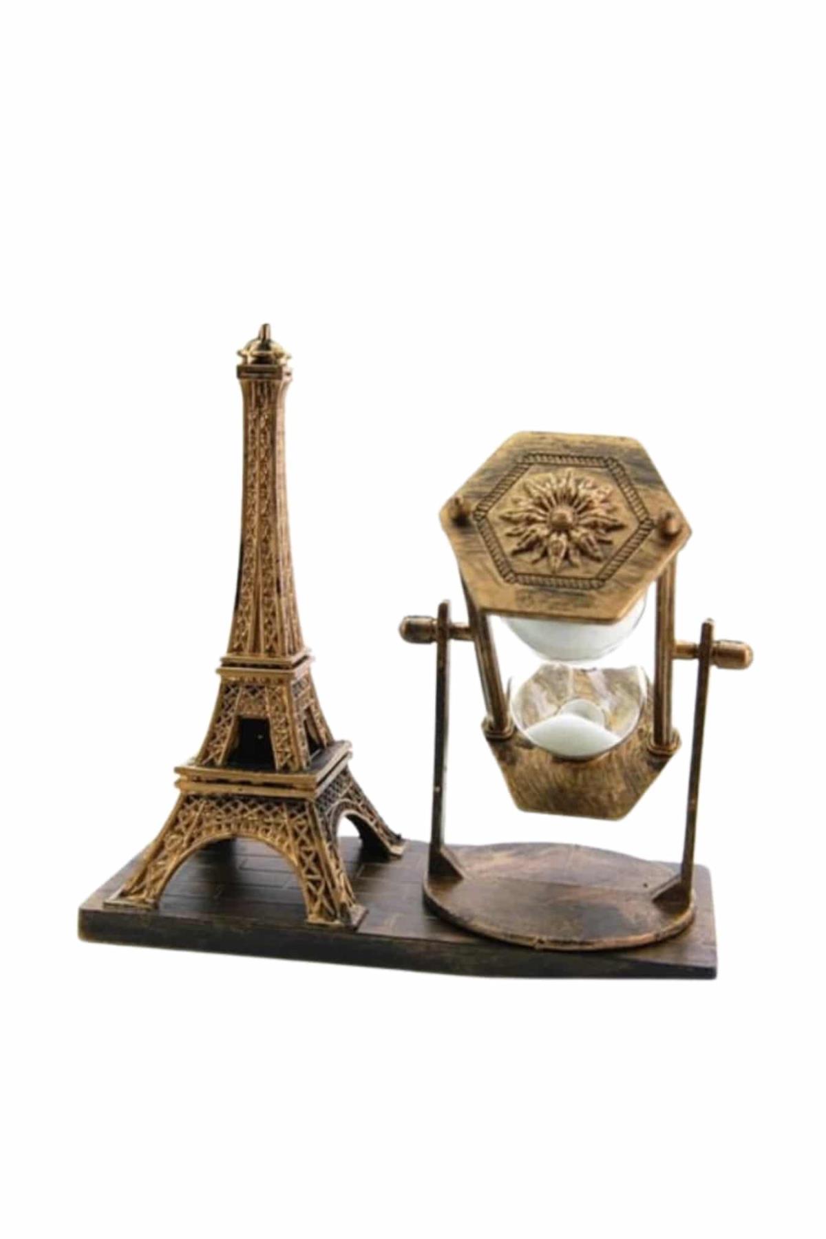 Dekoratif Eyfel Kulesi ve Kum Saati Vintage Tarzı Masa Süsü Biblo