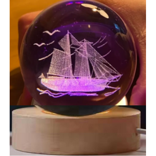 Dekoratif GEMİ Tasarımlı Ahşap altlıklı Işıklı Cam Küre