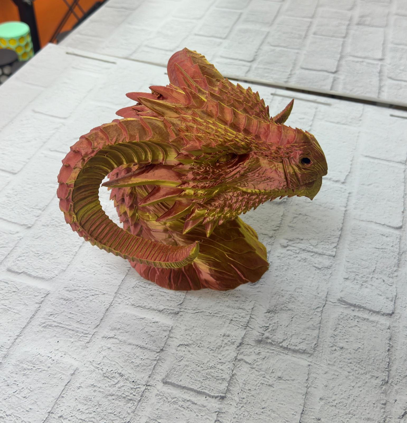 Gold ve kırmızı tonların birleşimiyle tasarlanan bu özel ejderha heykeli, dekorasyonunuzda adeta bir sanat eseri etkisi yaratır. Üzerindeki metalik ışıltı, ejderhanın keskin detaylarıyla birleşerek oldukça dikkat çekici bir görünüm sunar. Ejderhanın pullu yüz yapısı, kıvrımlı boynuzu ve gerçekçi kabartma dokusu, ürünü sıradan bir dekor parçasından çok daha öteye taşır. Hem oturma odası hem de ofis ve koleksiyon köşeleri için mükemmel bir seçimdir. Mitolojik ejderha figürü, birçok kültürde güç, kudret, koruma ve bilgelik sembolü olarak kabul edilir. Bu heykel de tam olarak bu enerjiyi yansıtan güçlü bir tasarıma sahiptir. Özellikle fantastik evrenleri sevenler, oyun odaları, tematik dekorasyon yapanlar ve koleksiyon tutkunları için ideal bir parçadır. Gold–kırmızı renk uyumu, ürüne hem lüks hem de mistik bir hava katmaktadır. Dayanıklı yapısı sayesinde uzun yıllar formunu koruyacak şekilde üretilmiştir. Masa, raf, vitrin, çalışma alanı, kitaplık veya temalı dekor köşelerinde sergilendiğinde bulunduğu ortamın merkezinde yer alır. Koleksiyonluk olarak da oldukça değerlidir ve özel günlerde hediye edilebilecek gösterişli bir dekoratif objedir. Bulunduğu ortamda dikkatleri üzerine çeken görkemli bir figür arıyorsanız, bu heykel doğru seçim olacaktır.