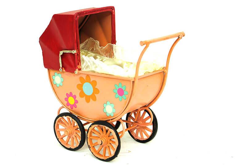 Dekoratif Metal Bebek Arabası Biblo Vintage Hediyelik