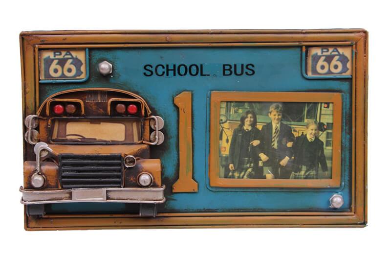 Dekoratif Metal Çerçeve Okul Otobüsü Dekorlu Hediyelik
