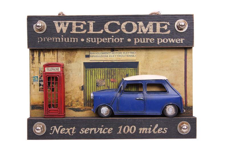 Dekoratif Metal Kapı Yazısı Araba ve Telefon Kulübesi Dekorlu