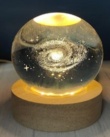 Dekoratif Samanyolu Tasarımlı Ahşap Altlıklı Işıklı Cam Küre Büyük Boy Cam:8cm Ahşap:2cm