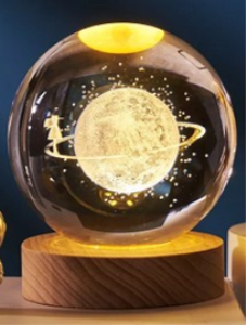 Dekoratif SATÜRN KIZ Tasarımlı Ahşap altlıklı Işıklı Cam Küre 6cm