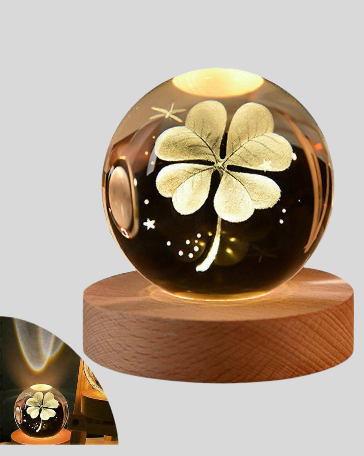 Dekoratif Yonca Görünümlü Işıklı Kristal Cam Küre USB Masa Gece Lambası