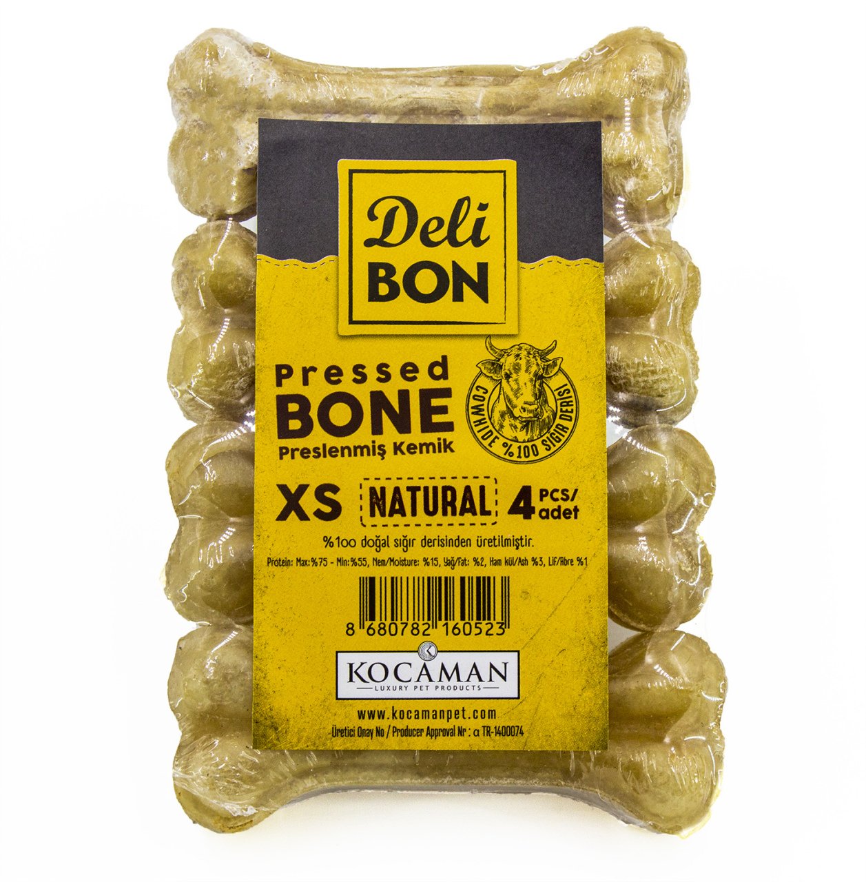 Delibon Deri Köpek Çiğneti Pres Kemik 4x7cm 7cm Natural