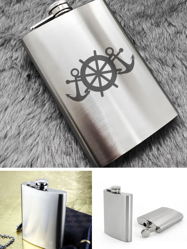 Denizci Çapa Temalı 9 Oz Paslanmaz Çelik Cep Matarası 266 Ml İçecek Cep Matarası