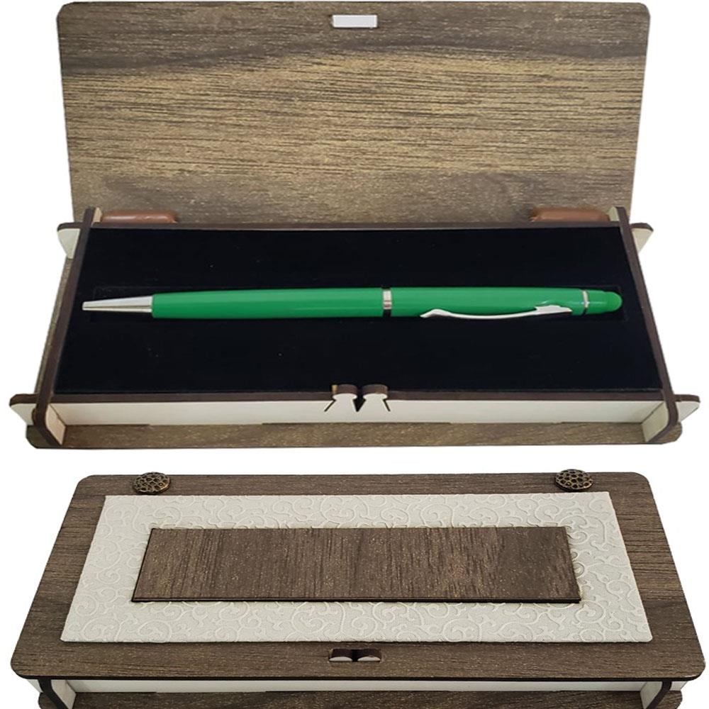 Deri Ahşap Kutulu Yeşil Dokunmatik Kalem
