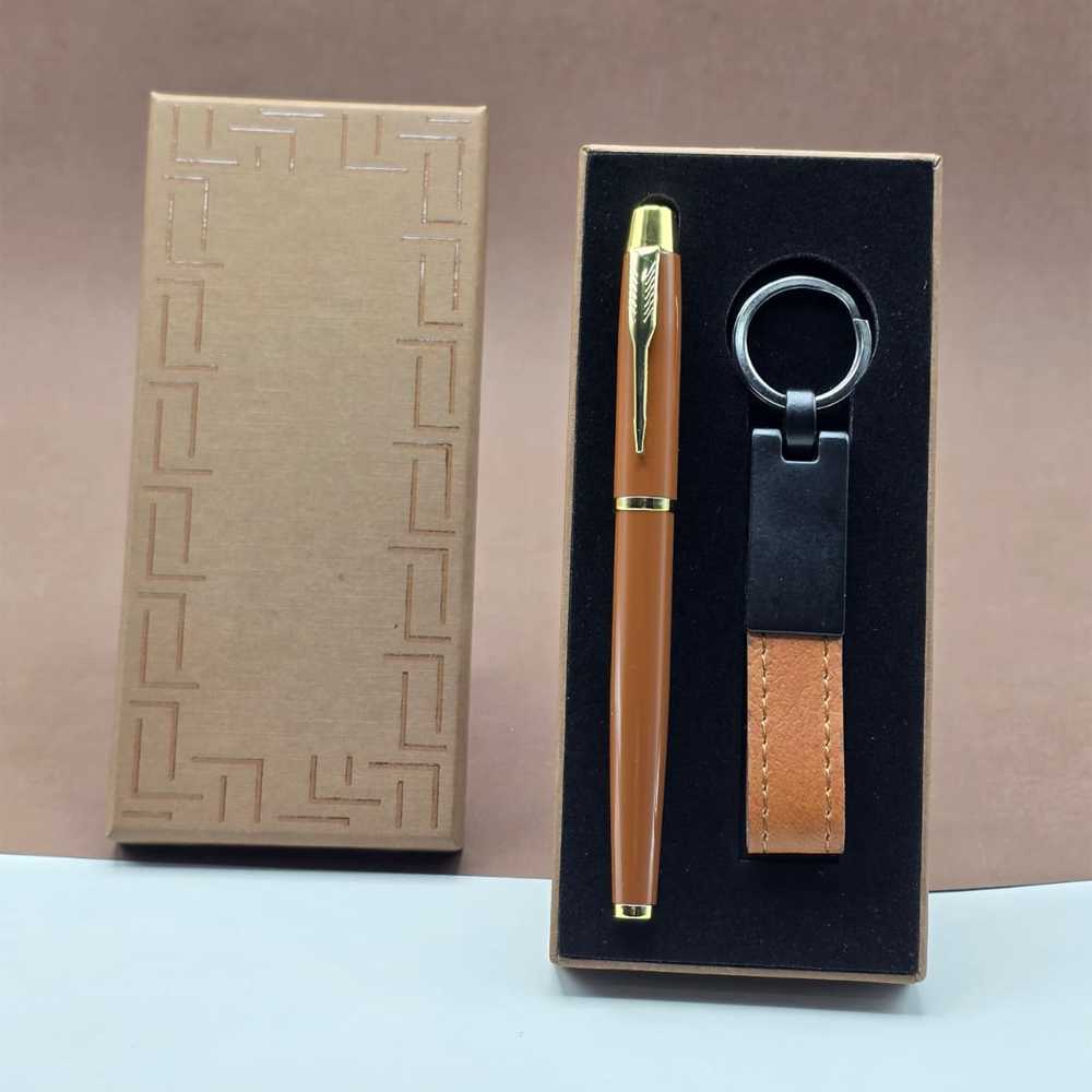 Deri Anahtarlık Ve Metal Kalem Seti