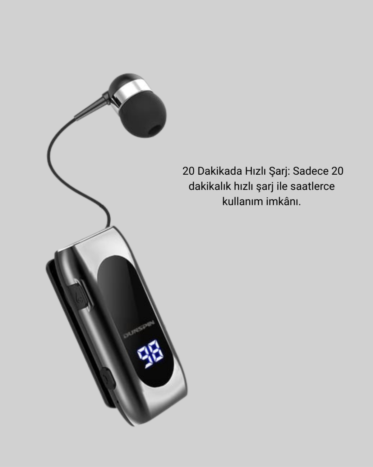 Yoğun iş temposuna ayak uyduracak şekilde tasarlanan Dunspin DS-F210, uzun pil ömrü, titreşimli çağrı bildirimi ve hızlı şarj avantajı ile profesyonel kullanıcılar için idealdir. 25 saate kadar kesintisiz müzik ve konuşma imkânı sunar. Dijital ekran göstergesi sayesinde şarj seviyesini sürekli kontrol altında tutabilirsiniz. Bluetooth 5.2 teknolojisi ile tüm telefonlarla uyumlu çalışarak 10 metreye kadar kesintisiz bağlantı sağlar. Ergonomik yapısı ve klipsli tasarımı sayesinde yanınızda kolayca taşıyabilir, her an erişilebilir hale getirebilirsiniz. Özellikle sahada çalışan, sık seyahat eden ya da yoğun telefon görüşmeleri yapan kullanıcılar için en doğru seçimdir.