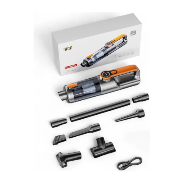 Dijital göstergeli şarjlı araç süpürgesi, araç içi temizlikte yüksek performans ve pratik kullanım sunmak üzere geliştirilmiştir. Ergonomik tasarımı ve hafif yapısı sayesinde tek elle rahatça kullanılabilir ve dar alanlarda kolay manevra imkânı sağlar. Üzerinde yer alan dijital gösterge sayesinde pil durumu ve çalışma bilgileri anlık olarak takip edilebilir, bu da kullanım süresini daha verimli planlamaya yardımcı olur. Güçlü emiş gücü ile koltuk araları, paspaslar, torpido ve bagaj gibi alanlarda biriken toz, kırıntı ve kirleri etkili şekilde temizler. Şarjlı yapısı sayesinde kablo karmaşası olmadan özgür bir kullanım sunar ve uzun ömürlü bataryası ile tek şarjda geniş alanların temizlenmesine olanak tanır. Hızlı şarj özelliği günlük kullanımı kolaylaştırırken, farklı temizlik ihtiyaçlarına uygun başlıkları sayesinde araç içinde detaylı ve kapsamlı temizlik yapılmasını sağlar. Turuncu ve gri renk kombinasyonu ile modern ve şık bir görünüme sahip olan bu süpürge, araç içi düzeni ve hijyeni korumak isteyen kullanıcılar için ideal bir çözümdür.