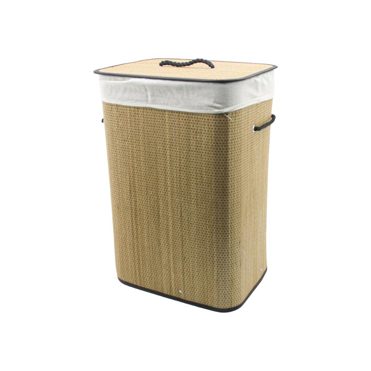 Dikdörtgen Hasır - Ahşap Kirli Çamaşır Sepeti 42X32X60Cm Seyyar Kapaklı İçi Bezli İp Kulplu