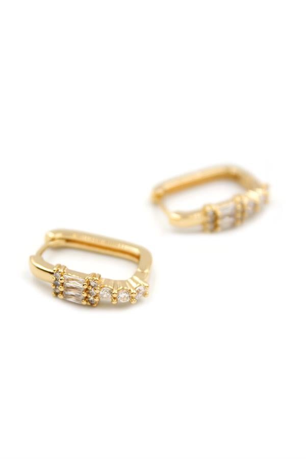Dikdörtgen Taşlı Küpe - Altın