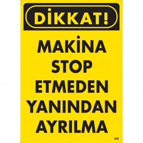 Dikkat Makine Stop Etmeden Yanından Ayrılma Uyarı Levhası 25x35 KOD:200