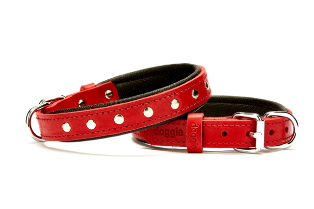 Doggie Deri Rivetli Köpek Tasması 2 cm x30-35 cm Kırmızı